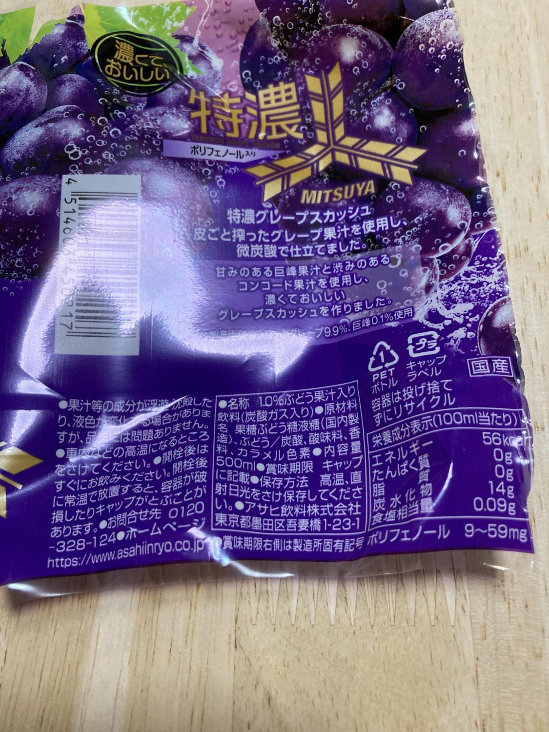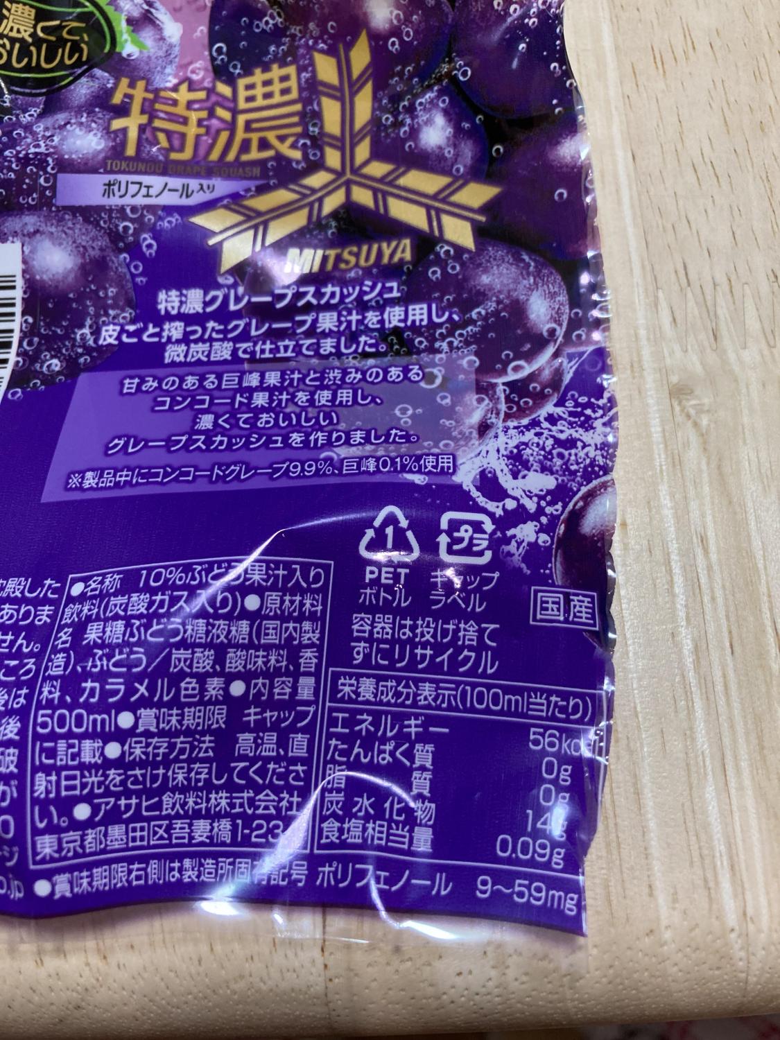 果糖ぶどう糖液糖(国内製造)、ぶどう/炭酸、酸味料、香料、カラメル色素