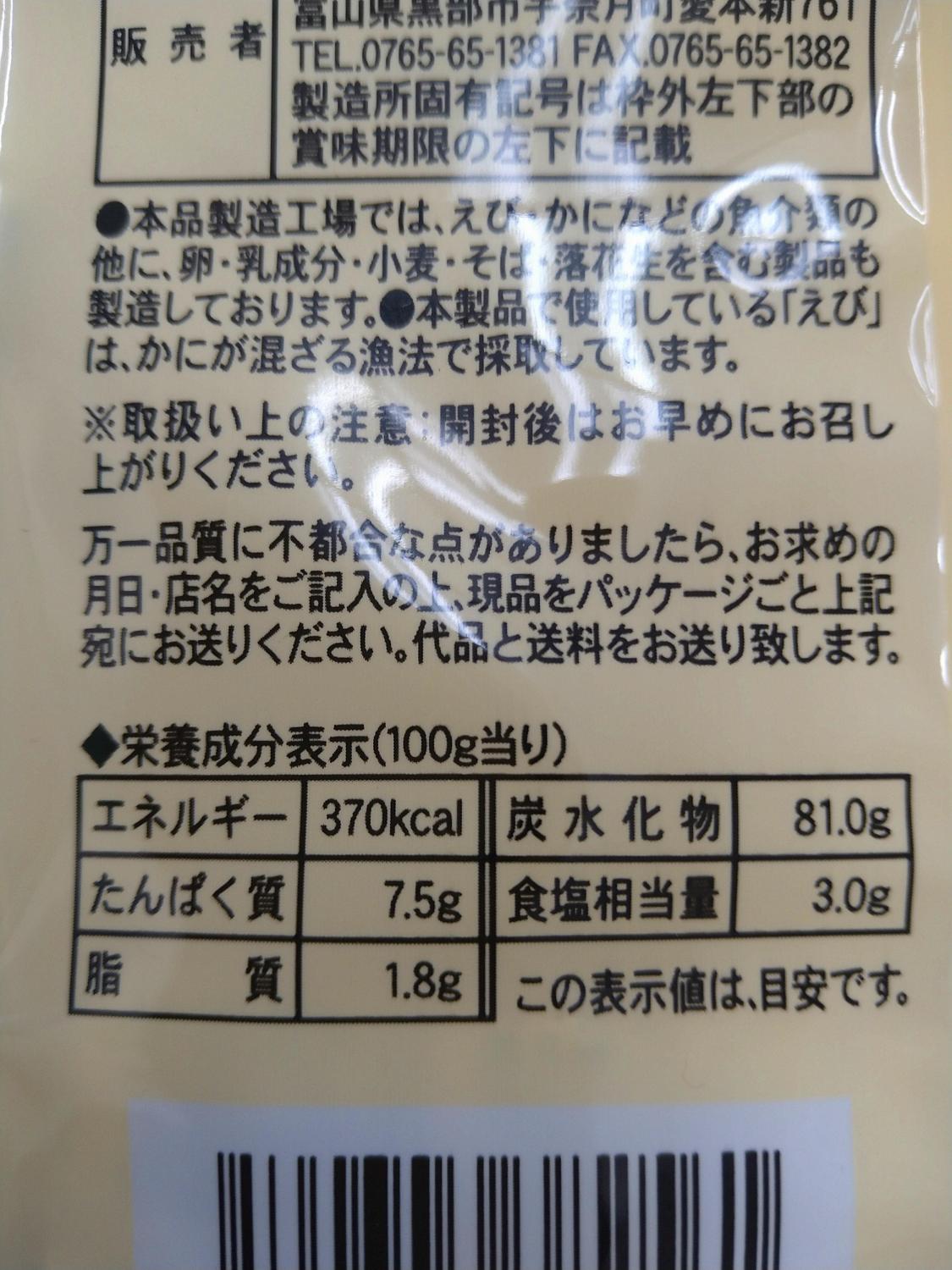 アレルギー表示:えび、小麦、大豆