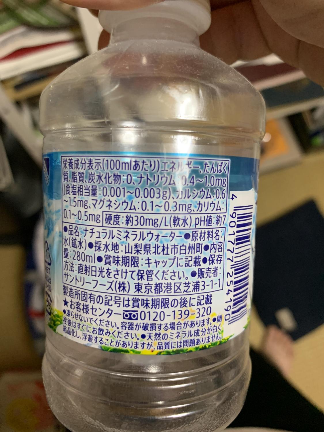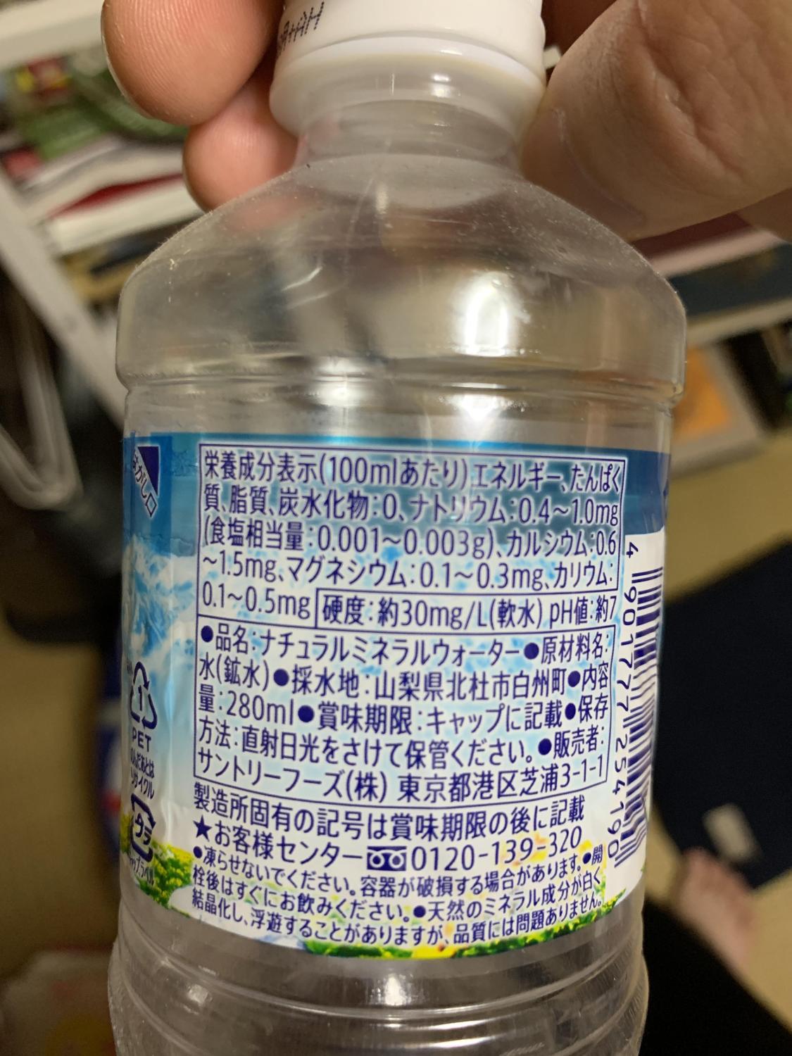 品名ナチュラルミネラルウォーター原材料名水(鉱水)採水地山梨県北杜市白州町内容量280ml栄養成分表示0、0、0、0、0.4~1.0mg、0.001~0.003g、0.6~1.5mg、0.1~0.3mg、10.1~0.5mg硬度約30mg/L(軟水)pH値約7販売者サントリーフーズ(株) 東京都港区芝浦3-1-1詳細を見る