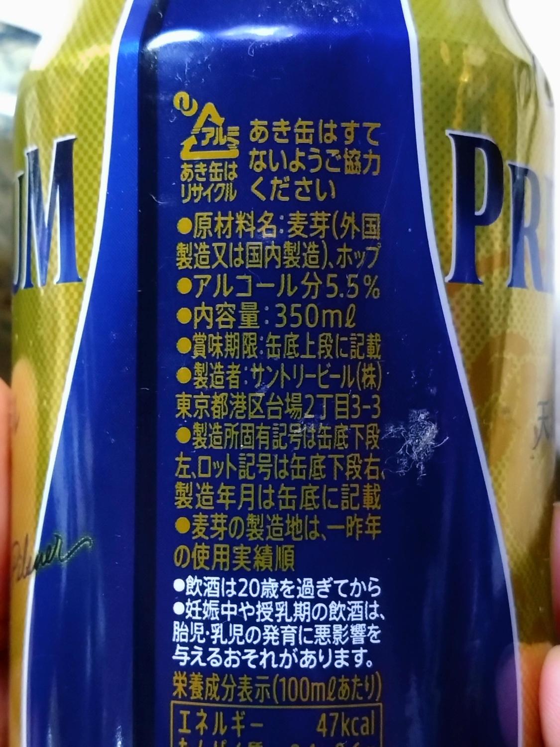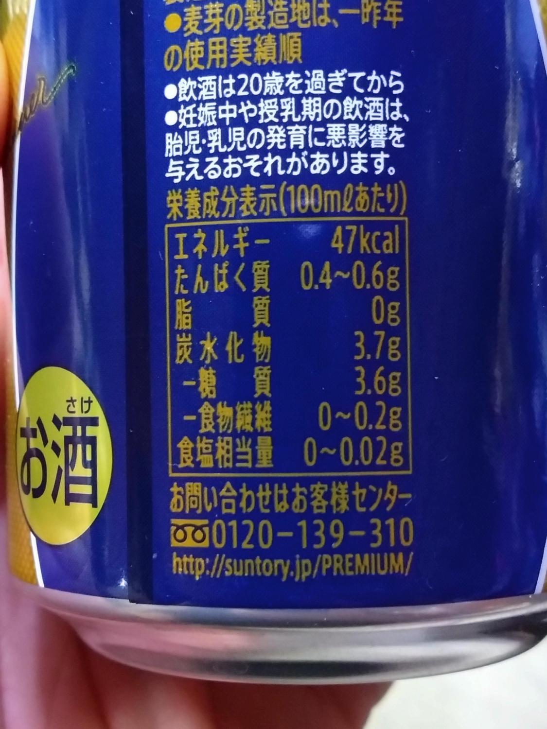 原材料名麦芽(外国製造又は国内製造)、ホップアルコール分5.5%内容量350ml賞味期限缶底上段に記載製造者サントリービール(株) 東京都港区台場2丁目3-3栄養成分表示47kcal詳細を見る