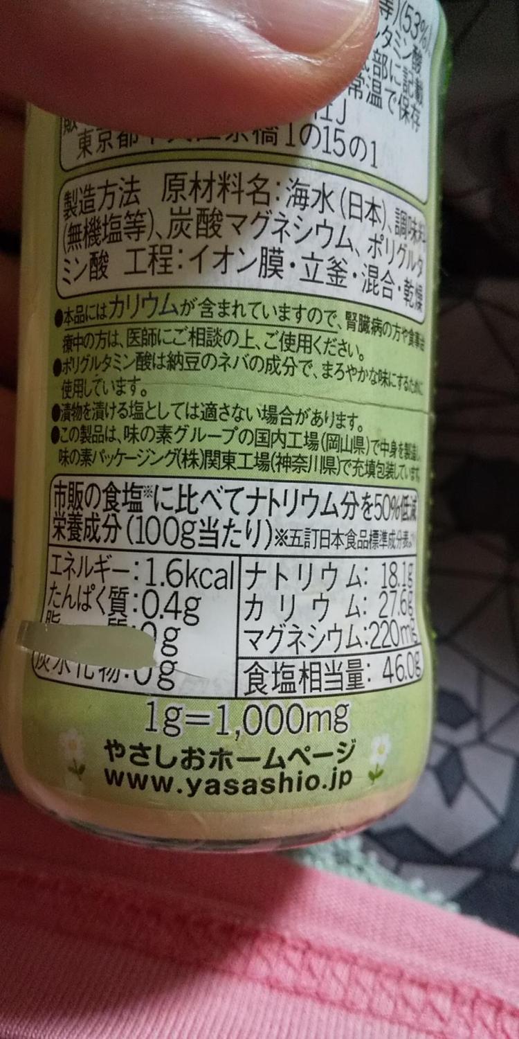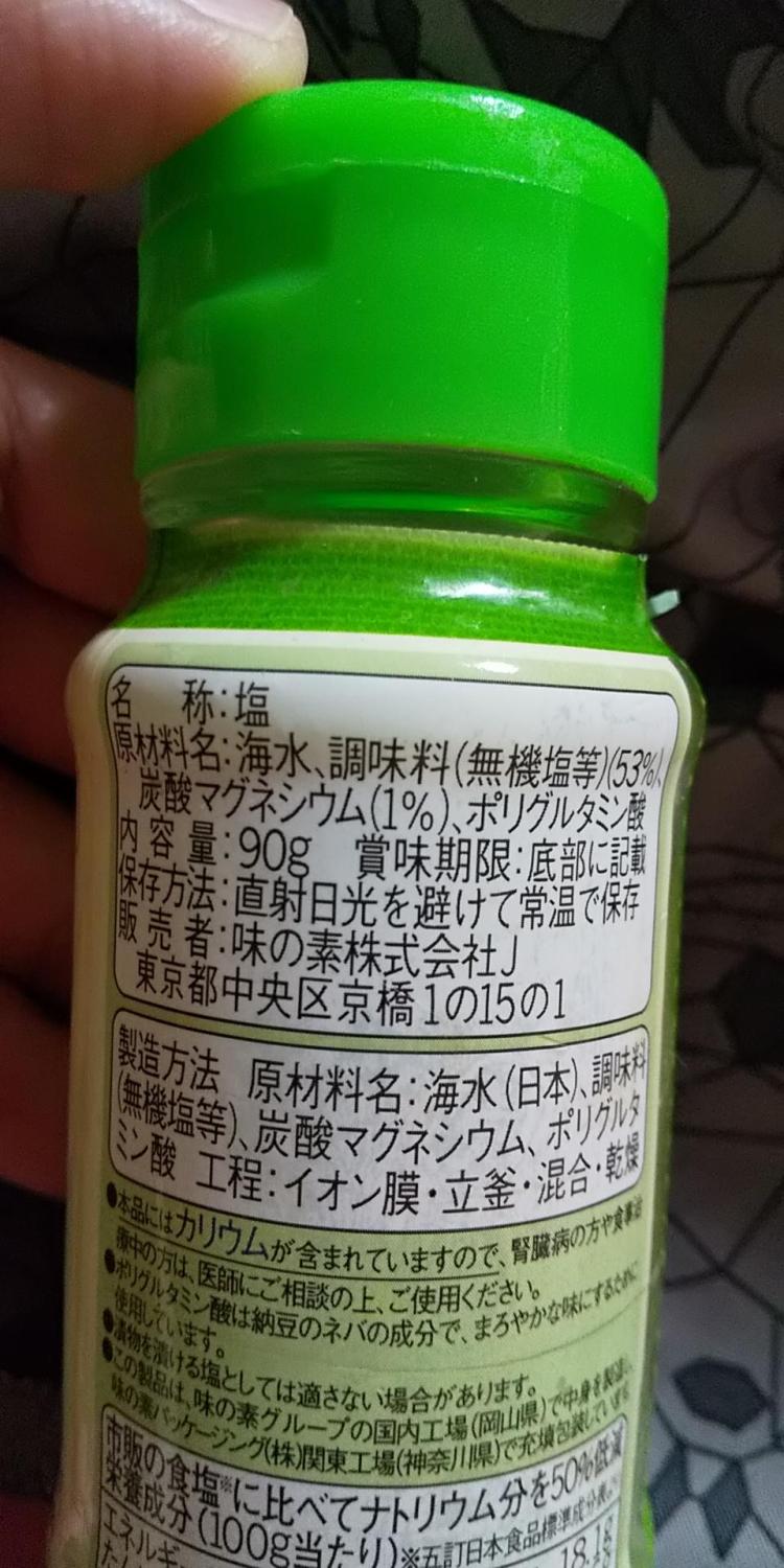 名称塩原材料名海水、調味料(無機塩等) 53%、炭酸マグネシウム (1%)、ポリグルタミン酸内容量90g賞味期限底部に記載保存方法直射日光を避けて常温で保存販売者味の素株式会社J 東京都中央区京橋1の15の1詳細を見る