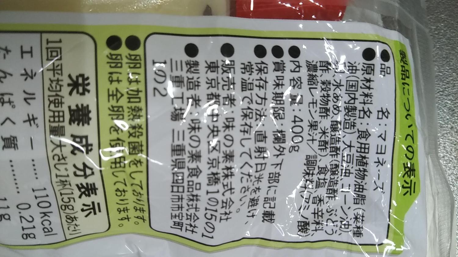 マヨネーズと言えばキューピーと頭が洗脳されておりますが、初めて味のも製を食べる事になりましたが、やはりキューピーだと確信しました。