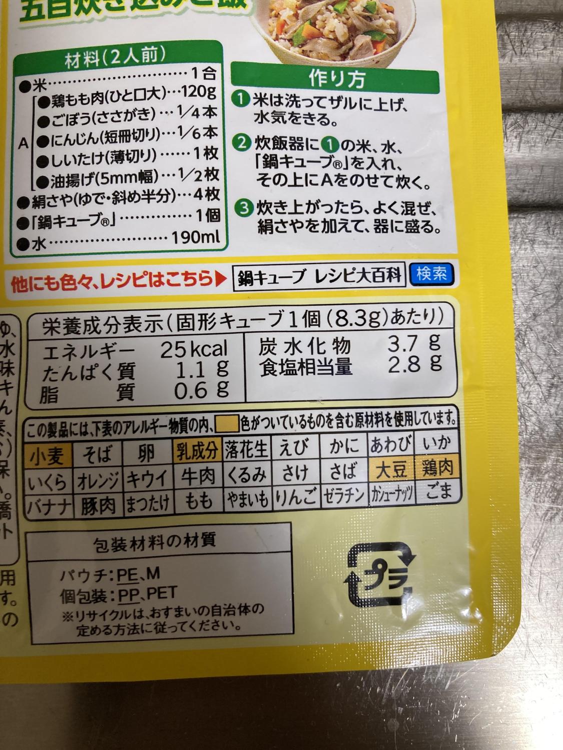 裏面のアレンジメニュー五目炊き込みご飯を作ってみました。コクがあって美味しいです