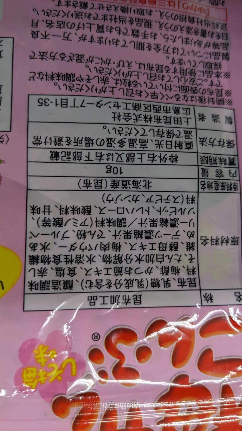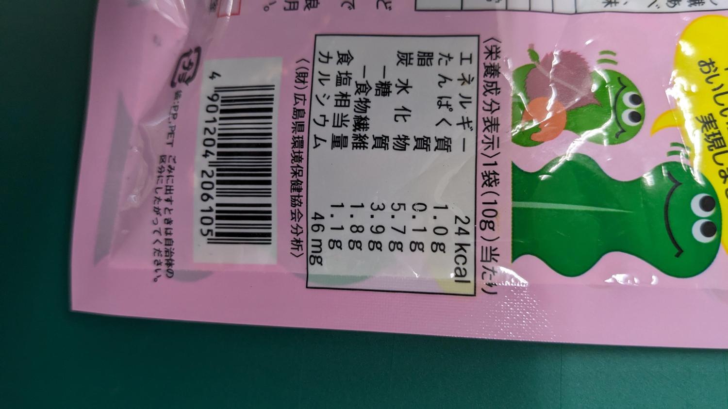食品単位1袋(10g)当たりエネルギー24kcalたんぱく質1.0g脂質0.1g炭水化物5.7g食塩相当量1.1gカルシウム46mg詳細を見る