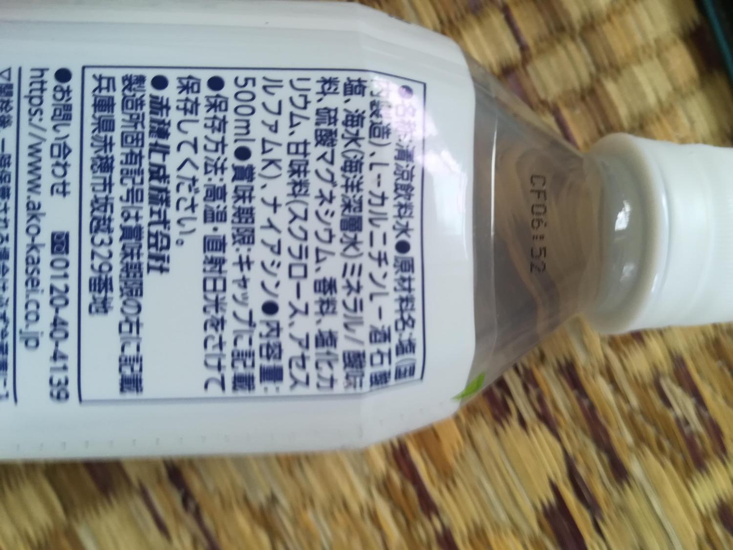 名称清涼飲料水原材料名塩(国内造)、L-カルニチンL酒石酸塩、海水(海洋深層水)、ミネラル/酸味料、硫酸マグネシウム、香料、塩化カリウム、甘味料(スクラロース、アセスルファムK)、ナイアシン内容量500ml保存方法高温・直射日光をさけて保存してください。詳細を見る