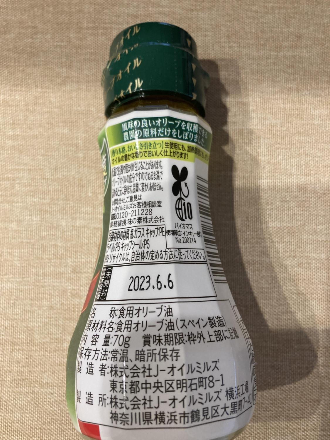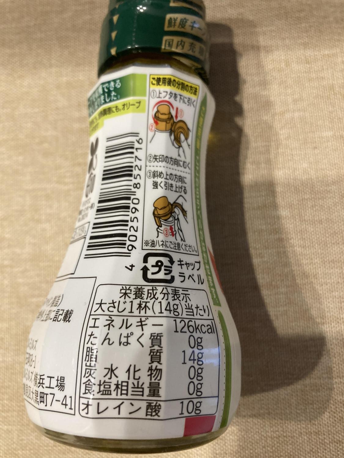 鮮度キープオリーブオイル かけて美味しいよ 生サラダにも美味をひき出しますよ