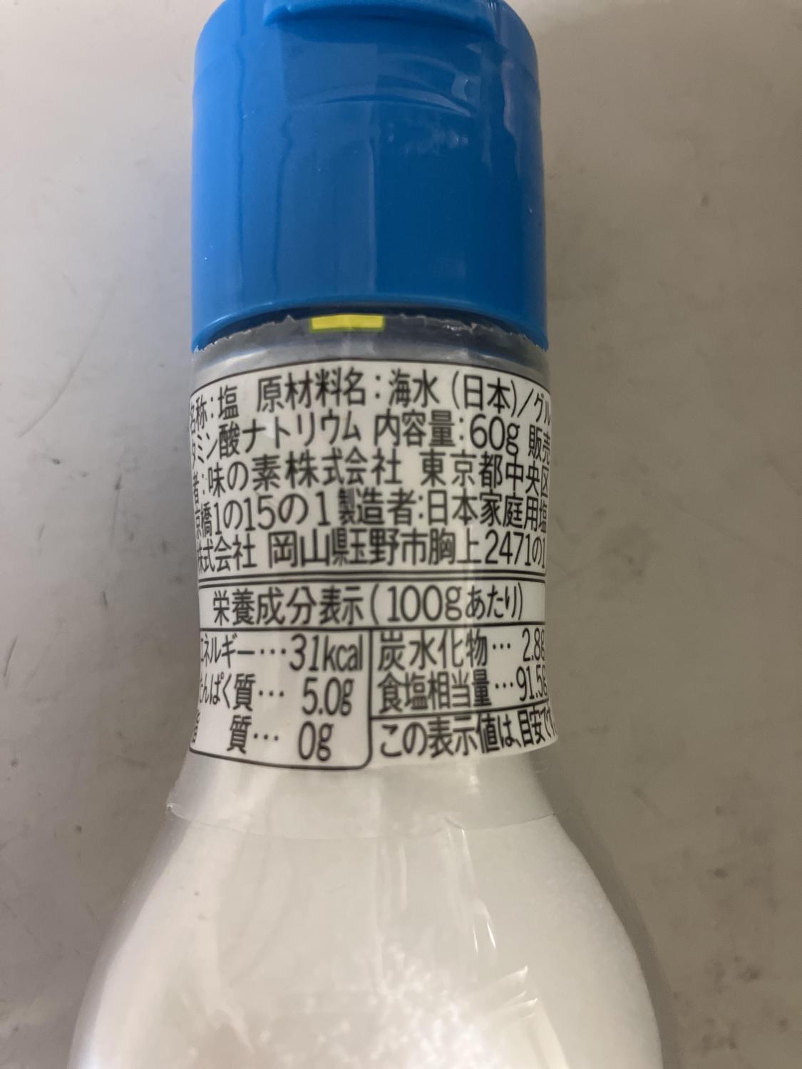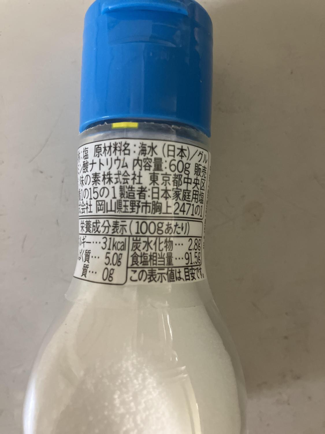 原材料名海水(日本)、グル内容量60g栄養成分表示(100gあたり)31kcal、2g、5.0g、915g詳細を見る